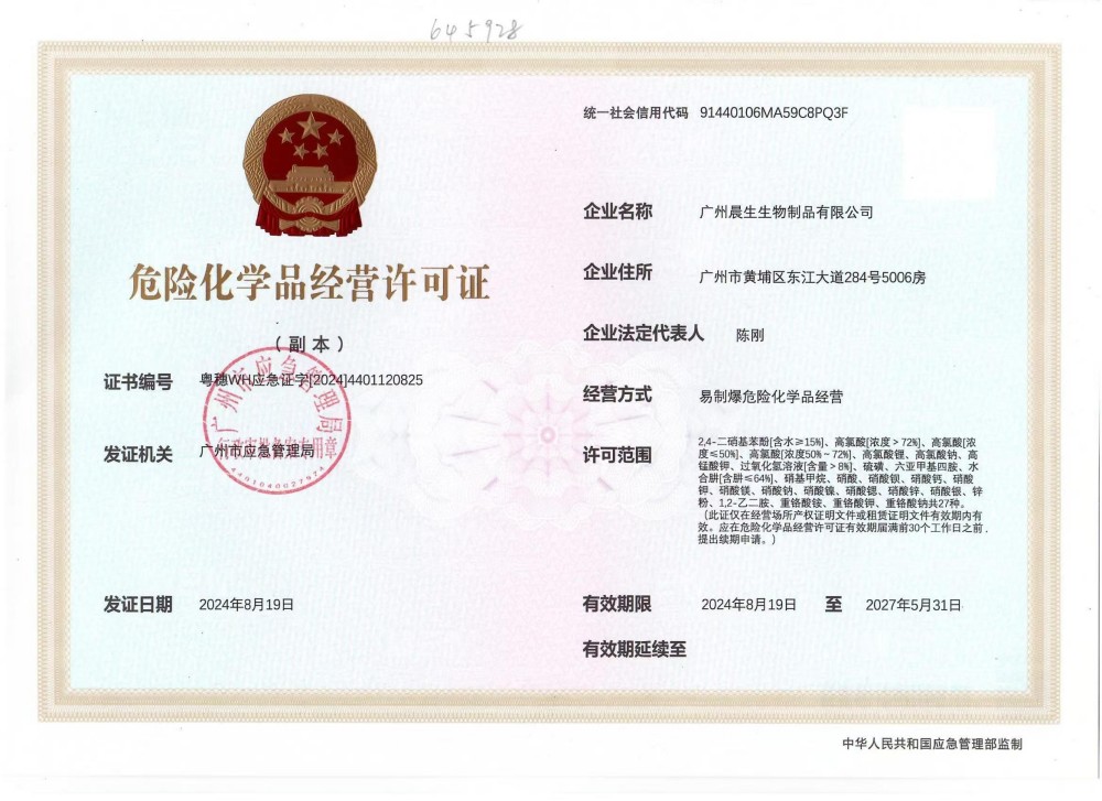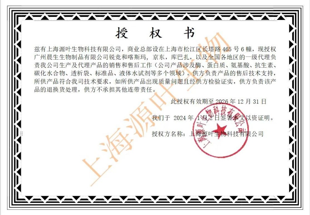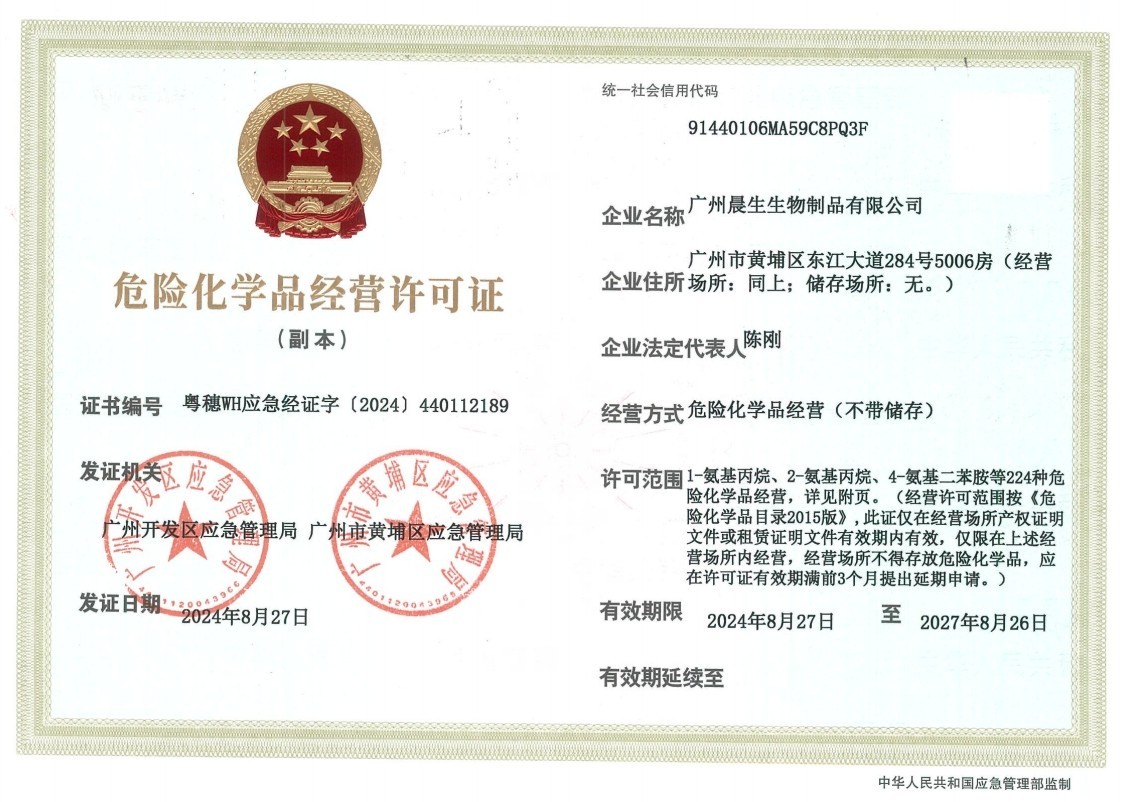 广州晨生生物制品有限公司(晨生生物)成立于2016年, 位于广州科学城,是专业从事生命科学领域科研耗材、试剂的提供商,提供环境、食品、科研试剂检验检测以及生物技术咨询、交流服务,致力于为生物实验室提供 全面、专业、高效的解决方案。晨生生物自成立以来,相继涉足不同领域,包括但不限于生物技术、生命科学、医疗检测、化工化学等领域,并已入驻锐竞、喀斯码等采购平台。