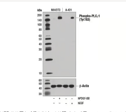 表皮生长因子(EGF)受体是属于HER/ERBB蛋白家族的跨膜酪氨酸激酶。配体结合导致受体二聚化,自磷酸化,下游信号传导的激活,内在化和溶酶体降解(1,2)。激酶结构域Tyr845上EGF受体(EGFR)的磷酸化与稳定激活环,维持活性态酶并为底物蛋白提供结合表面(3,4)。 C-SRC参与Tyr845处EGFR的磷酸化(5)。 PLCγ的SH2结构域在磷酸-TYR992上结合,导致PLCγ介导的下游信号传导的激活(6)。 EGFR在Tyr1045上的磷酸化为衔接蛋白C-CBL创建了一个主要的对接位点,从而导致EGFR激活后的受体泛素化和降解(7,8)。 GRB2适配器蛋白在磷酸-TYR1068上结合活化的EGFR(9)。一对磷酸化的EGFR残基(Tyr1148和Tyr1173)为SHC支架蛋白提供了一个对接位点,并且两个位点都参与MAP激酶信号传导(2)。 EGFR在特定丝氨酸和苏氨酸残基上的磷酸化减弱了EGFR激酶活性。 EGFR羧基末端残基Ser1046和Ser1047被CAM激酶II磷酸化;这两种丝氨酸的突变导致EGFR酪氨酸自磷酸化上调(10)。