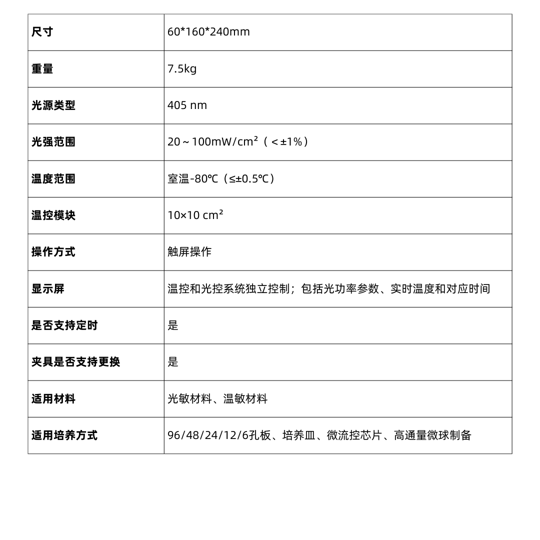 逸芯生命科学研发的多功能固化仪(Multi curing)包括光固化模块、温度固化模块以及独立控制参数的系统,主要应用于2D/3D细胞培养实验、适用于光敏材料和温敏材料,对成胶强度稳定性要求较高的实验。此款产品具有体积小、光源/温度可控,受热均匀等优势,专门为方便高通量微球制备交联固化而设计。